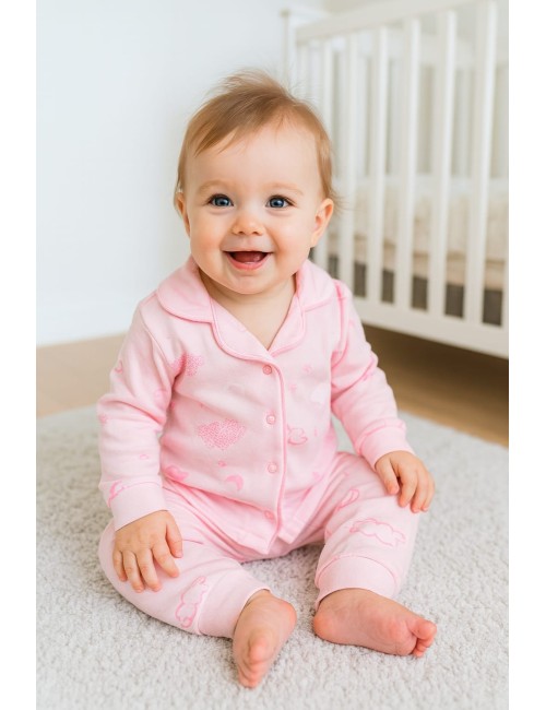Un pyjama bébé spécialement conçue pour les tout-petits. Fabriqué en coton, il offre confort et chaleur pendant le sommeil. Typiquement composé d'une combinaison à manches longues et de pantalons assortis, le pyjama bébé comporte une fermeture éclair, des boutons facilitant l'habillage et le déshabillage rapide, ce qui le rend pratique pour les changements de couche nocturnes.