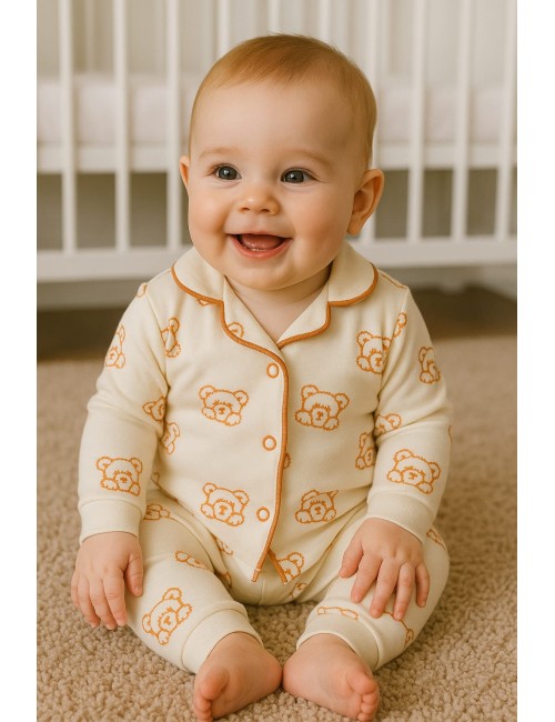 Un pyjama bébé spécialement conçue pour les tout-petits. Fabriqué en coton, il offre confort et chaleur pendant le sommeil. Typiquement composé d'une combinaison à manches longues et de pantalons assortis, le pyjama bébé comporte une fermeture éclair, des boutons facilitant l'habillage et le déshabillage rapide, ce qui le rend pratique pour les changements de couche nocturnes.