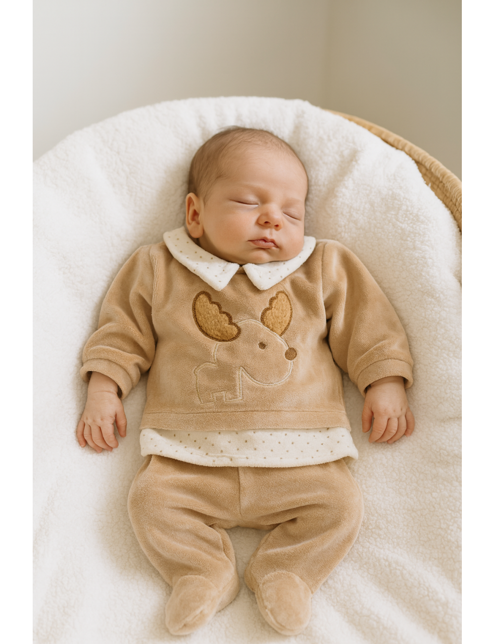 Un ensemble pour bébé comprend un haut, et un pantalon. Fabriqué dans des tissus doux, cet ensemble assure la chaleur et la liberté de mouvement pour le bien-être du bébé, tout en facilitant l'habillage pour les parents.