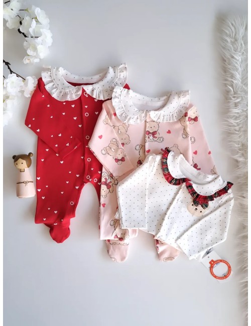 Ensemble de 3 grenouillères pour bébé, manches longues, conçues pour allier confort et praticité. Dotées de fermetures pratiques pour faciliter les changements de couches, ces grenouillères offrent un style mignon tout en assurant la chaleur nécessaire par temps frais. Fabriquées dans un tissu doux et respirant, elles sont ornées de motifs adorables, créant ainsi un ensemble idéal pour le quotidien de votre petit.