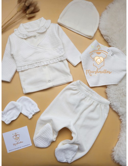Découvrez notre adorable ensemble de naissance en velours, conçu avec amour pour offrir à votre nouveau-né douceur et confort dès le premier jour. cet ensemble comprend tout ce dont bébé a besoin pour commencer son voyage avec style. Les détails délicats et les motifs mignons ajoutent une touche de charme à chaque pièce. Parfait pour offrir en cadeau ou pour accueillir votre tout-petit dans le monde avec une douceur inégalée. Faites de chaque moment un moment câlin et tendre avec notre ensemble de naissance en velours.