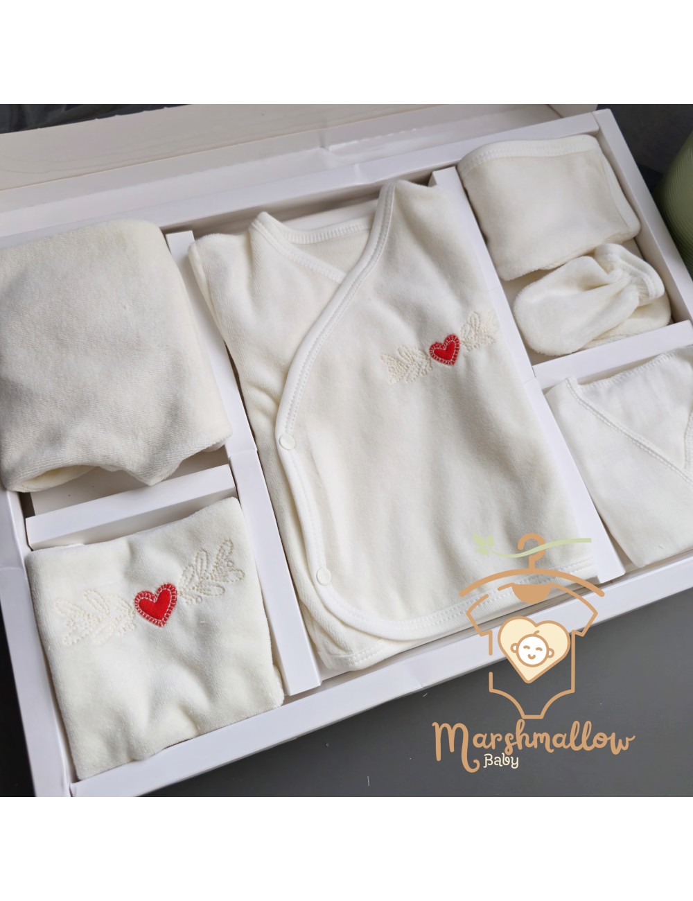 Découvrez notre adorable ensemble de naissance en velours, conçu avec amour pour offrir à votre nouveau-né douceur et confort dès le premier jour. Fabriqué à partir de coton de haute qualité, cet ensemble comprend tout ce dont bébé a besoin pour commencer son voyage avec style. Les détails délicats et les motifs mignons ajoutent une touche de charme à chaque pièce. Parfait pour offrir en cadeau ou pour accueillir votre tout-petit dans le monde avec une douceur inégalée. Faites de chaque moment un moment câlin et tendre avec notre ensemble de naissance en coton.