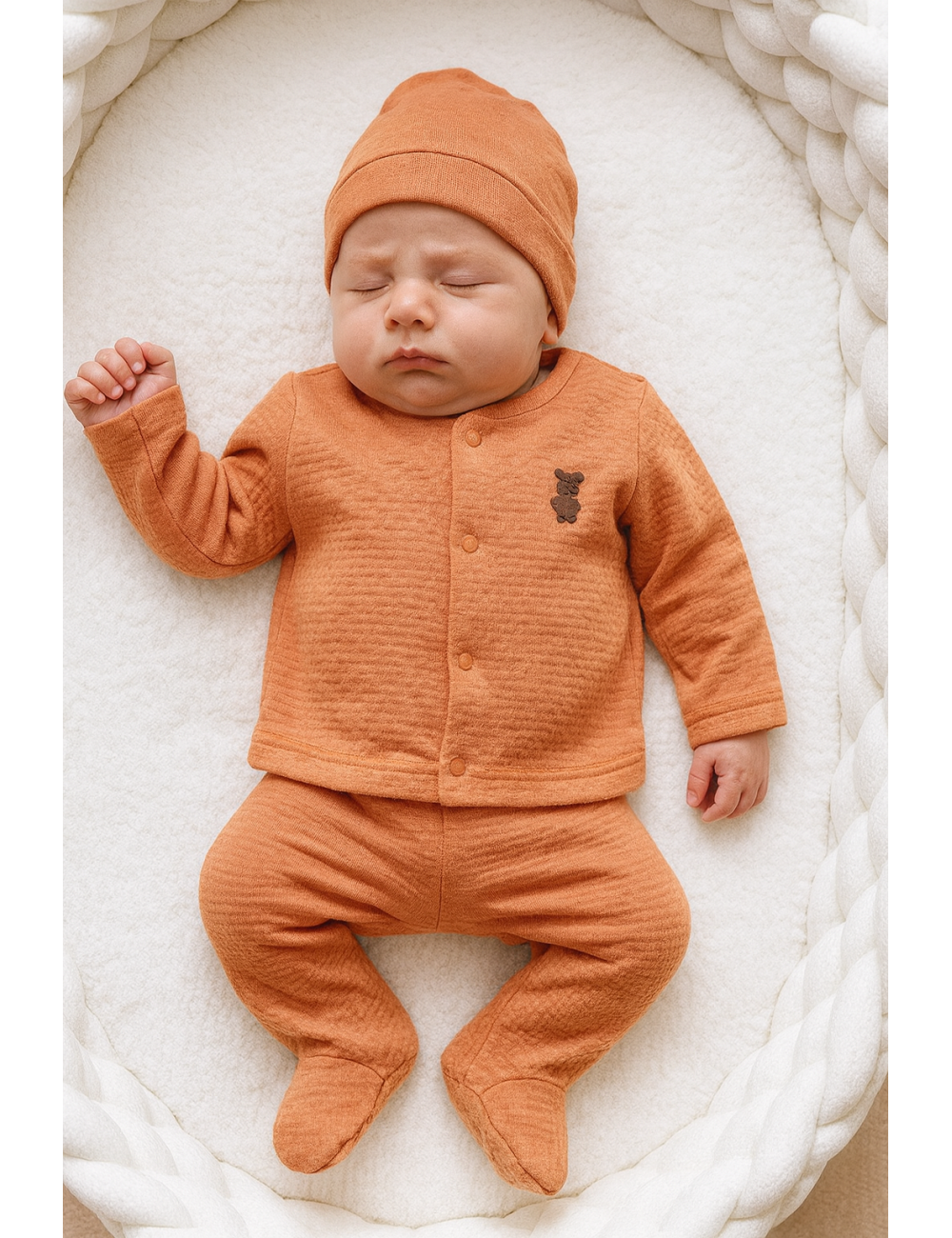 Un assortiment complet en 3 pièces avec body, pantalon, et un bonnet