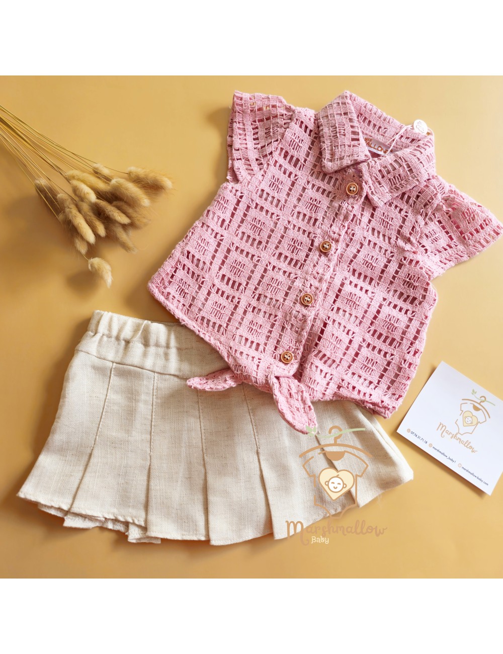 Un ensemble chic pour bébé fille comprend une chemise élégante, une jupe assortie et des bats. créant une tenue adorable et stylée pour les occasions spéciales.